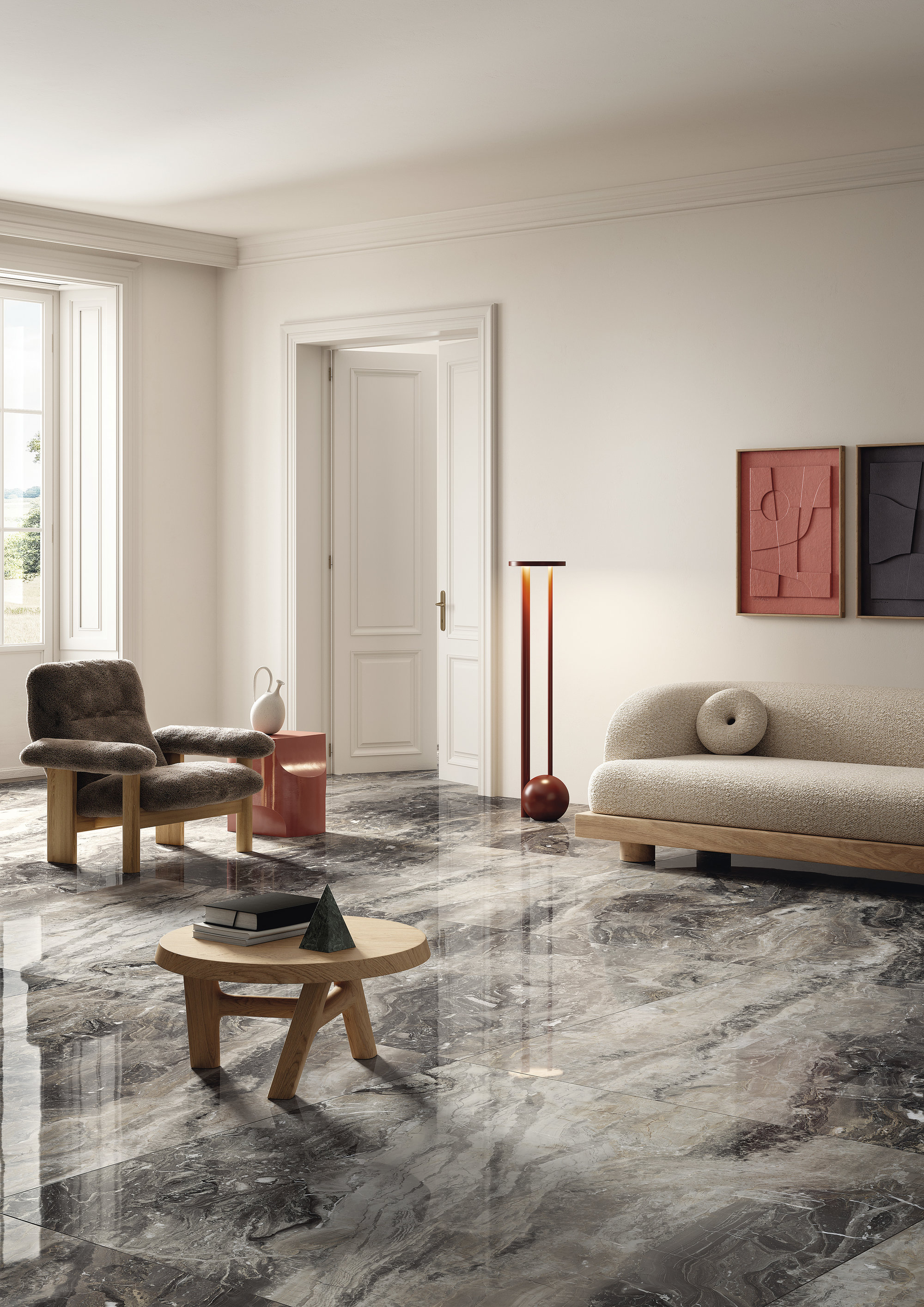Shades of white, combined with varying tones of gray and brown and subtle ochre hues, give Orobico Arabescato a lively and sinuous appearance. The polished finish highlights this surface in all its preciousness; also available in an open-vein (book-match) version, Arabescato Orobico is the ideal choice for prestigious architecture and interiors, whether residential, commercial, or public. In addition to flooring and wall applications, it can also be used to customize furnishings and architectural details.