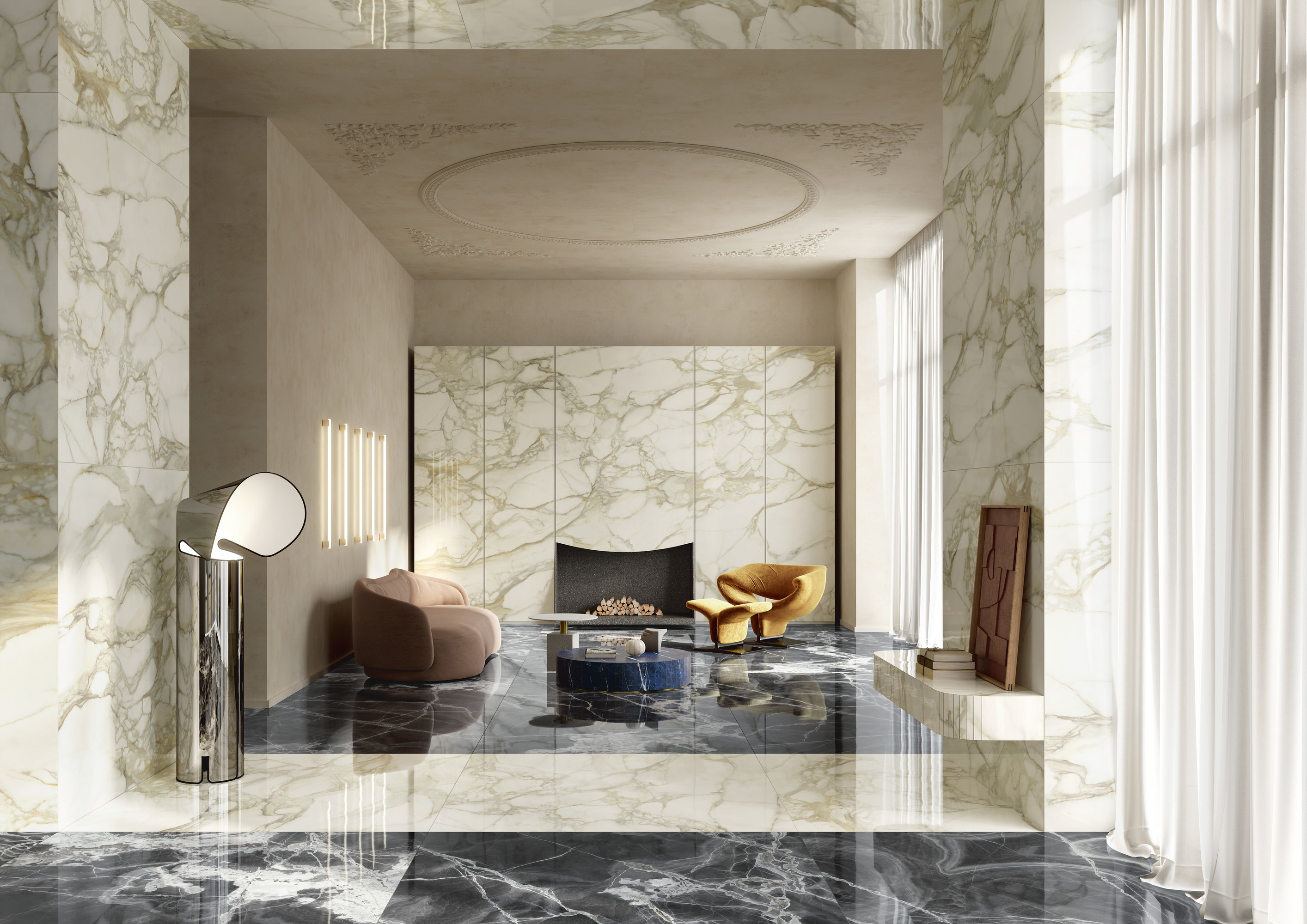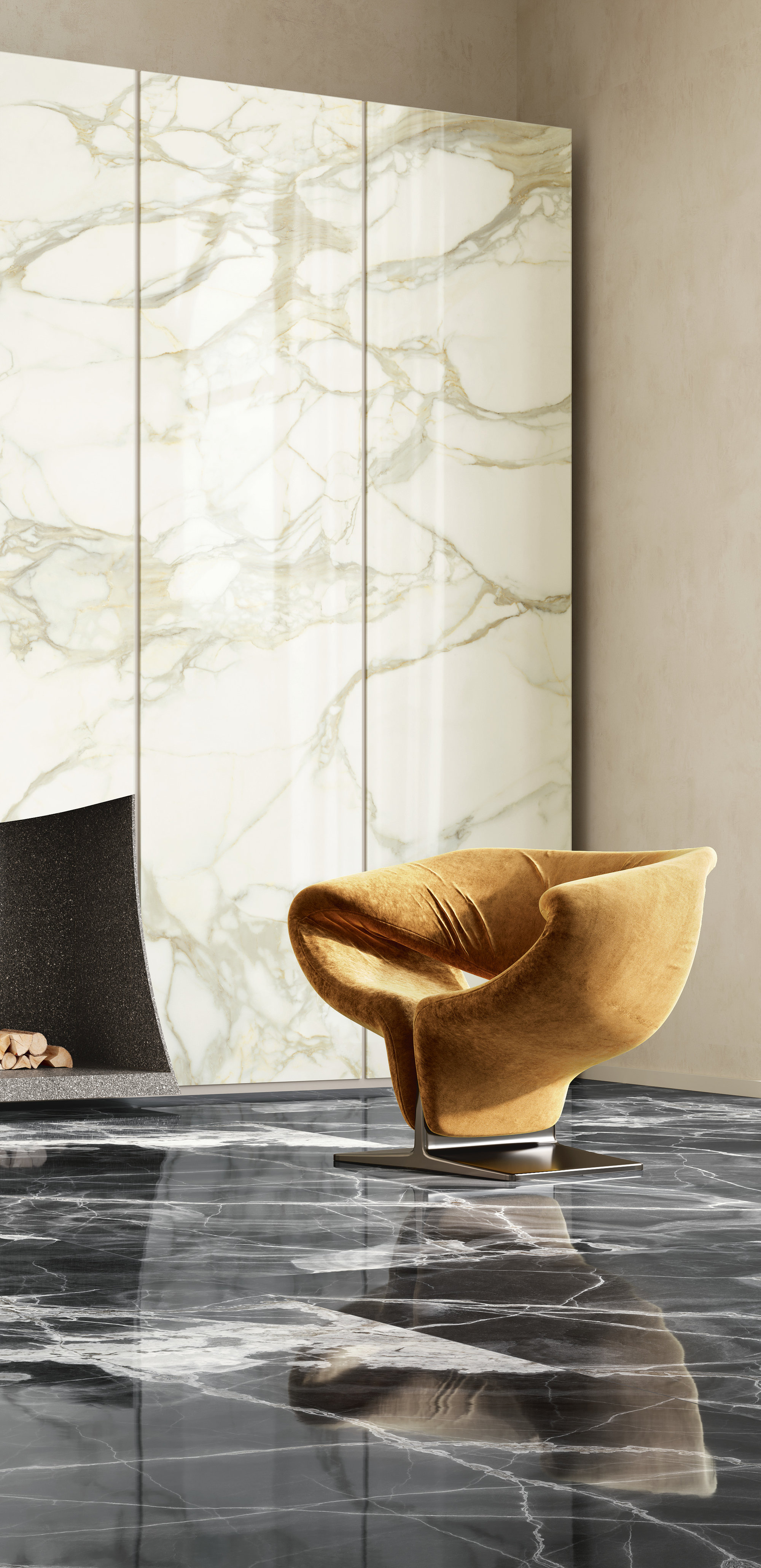 Calacatta Dorato captures attention with golden, deep, and sinuous veins that bring warmth, movement, and refinement to spaces. This ceramic surface is ideal for enhancing private residences, commercial projects, and hospitality environments, where design quality must not compromise functionality, durability, or ease of maintenance. The Polished finish adds brightness and shine to the texture, while the Natural finish provides a matte, more contemporary look. Available in both classic and Maximum formats.