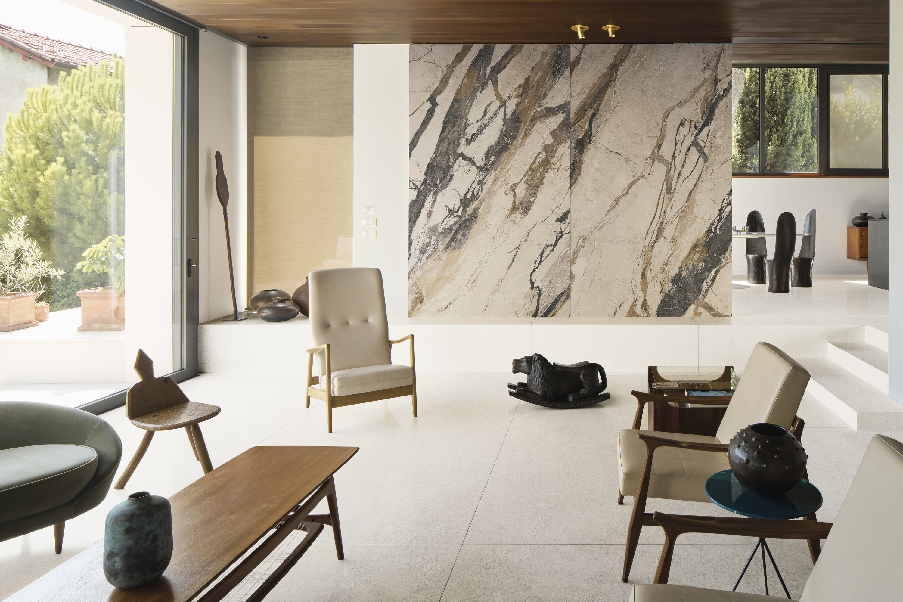 A ceramic of great visual energy, characterized by an interweaving of bold veins overlapping on a light background. The contrasts between greys, whites, and darker shades create depth and movement, like a surface in constant transformation. Breccia Phoenix is designed for those seeking expressiveness and character, capable of becoming the protagonist of any space. Available in Natural and Natural Plus finishes, in traditional formats and in slab form, it brings a language that is both strong and refined to interiors. The large Breccia Phoenix slab is produced with revolutionary water-based technology. An absolute innovation for the sector, combining environmental sustainability with the highest level of aesthetic performance.